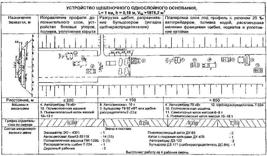 Таблица 50 Технология устройства однослойного щебеночного основания (покрытия) методом заклинки