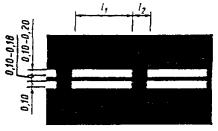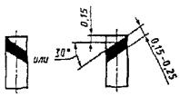 Примечания. 1. Места пересечения и примыкания согласовываются с землепользователем. 2. Съезды на вспомогательные полевые дороги должны иметь покрытие основной дороги на протяжении полосы отвода, а при согласовании с землепользователем не менее 25 м при движении одиночных автомобилей и сельскохозяйственных машин и 50 м при движении автопоездов и тракторов с прицепами. На глинистых и тяжелых суглинистых грунтах длина съезда с покрытием принимается не менее 50 м. В конце съезда (переезда) устанавливается щебеночный упор длиной 6,0 м. 3. Пересечения и примыкания на участках выпуклых кривых в продольном профиле и с внутренней стороны закруглений в плане допускаются в исключительных случаях. 4. Минимальный радиус примыкания в местах пересечений дорог I и II категорий - 25 м. Расстояние между пересечениями на дорогах I-a категорий не менее 10 км, I-б и II - 5 км. Таблица 10 Параметры переходно-скоростных полос