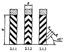 Примечания: 1, 2, 3, 4 - барьерное одностороннее металлическое ограждение 11ДО-1 (2,3,4) по ГОСТ 26804-86; 5 - то же по ТПР 503-0-17; 6 - то же с металлической планкой на железобетонных стойках по ТПР 503-0-17; 7, 8 - то же железобетонное с шагом стоек 1,25 и 2,5 м по ТПР 503-0-17; 9 - то же тросовое по ТПР 503-0-17; для Нечерноземной зоны следует пользоваться табл. 7.2 РСН-88. Направляющие устройства (сигнальные столбики) устанавливаются на опасных участках дорог, где не требуется искусственного освещения и установки ограждений 1 группы. Сигнальные столбики следует устанавливать (табл. 69, 70): Таблица 69 Установка сигнальных столбиков в пределах кривых продольного профиля при высоте насыпи не менее 2,0 м