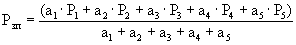 где Р1, Р2, Р3, Р4, Р5 - оценки качества подготовки каждого параметра земляного полотна: вертикальные отметки продольного профиля, поперечного уклона, сужения между осью и бровкой, заложения откосов, плотности; a1, a2, а3, а4, a5 - коэффициенты значимости контролируемых параметров, принимаемые соответственно 0,90; 0,90; 1,00; 1,00; 1,00. Аналогично рассчитывается комплексный показатель качества по каждому промежуточному слою дорожной одежды. Комплексный показатель качества устройства оснований и покрытий дорожных одежд, состоящих из отдельных участков, построенных в разное время или в разных местах, определяется по формуле