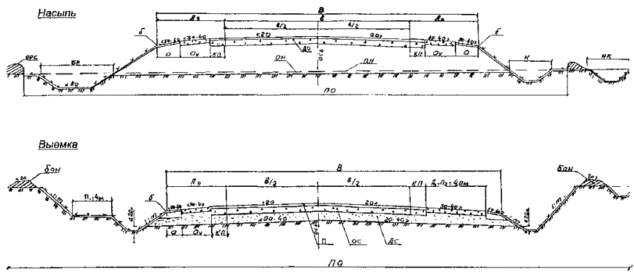 Основные параметры поперечного профиля проезжей части и земляного полотна автомобильных дорог