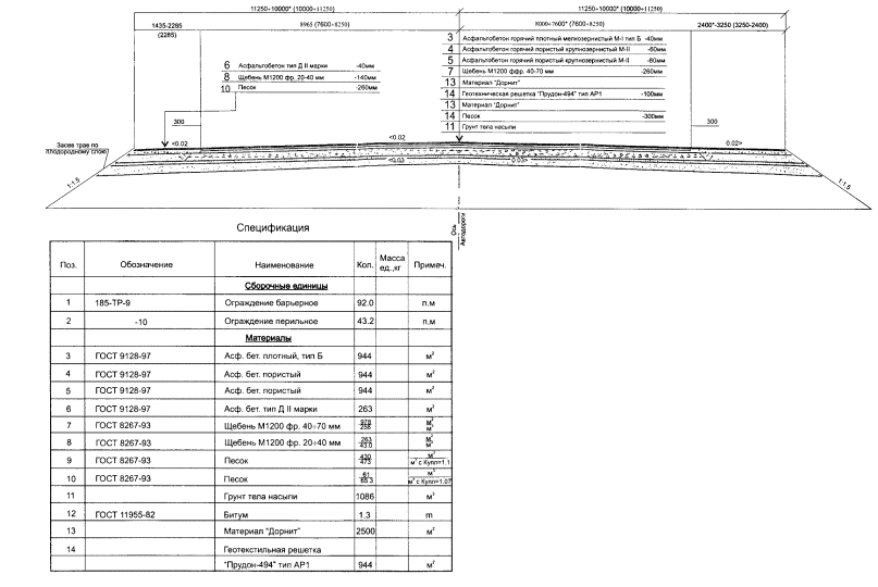 III-2. Поперечные профили земляного полотна автодороги на слабом основании с использованием георешетки «ПРУДОН-494». 9