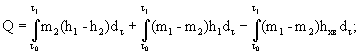 тепловая энергия, полученная потребителем при равенстве расходов теплоносителя в подающем и обратном трубопроводах (m1 - m2 = m), Q