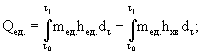 где hхв - энтальпия холодной воды на источнике тепловой энергии; остальные обозначения те же, что в п.2.2, но для потребляющей установки. 2.5. Тепловую энергию, содержащуюся в теплоносителе, прошедшем по любому единичному (одному) трубопроводу или однотрубной системе, Qед., определяют по формуле где mед. и hед. - соответственно, массовый расход и энтальпия теплоносителя в любом единичном (одном) трубопроводе, независимо от его назначения; hхв - энтальпия холодной воды на источнике тепловой энергии. 2.6. По Формулам (2.1 ... 2.3; 2.5 ... 2.7 и 2.9) измеряют величины Q; Qед. с вычитанием из них тепловой энергии холодной воды, представленной интегралами, содержащими сомножитель hхв при условии, что расход холодной воды равен разности расходов (m1-m2). При этом в формулах (2.5 ... 2.7; 2.9) hхв может быть определена по принятой в установленном порядке температуре холодной воды tхвп при условии оценки погрешности, обусловленной отклонением принятой температуры tхвп от действительной температуры холодной tхв. При измерении величины Q и Qед. без исключения из них тепловой энергии холодной воды, указанные величины следует определять по формулам (2.1 ... 2.3; 2.5 ... 2.7 и 2.9), опуская интегралы в подинтегральное выражение которых входит сомножитель hхв. В последнем случае уменьшается погрешность измерений тепловой энергии за счет исключения погрешности измерений тепловой энергии холодной воды и такие измерения являются предпочтительными. В этом случае, при необходимости учета тепловой энергии холодной воды она может быть определена отдельно, например, как произведение принятого в установленном порядке среднего значения энтальпии холодной воды на источнике тепловой энергии, на массу отобранной из системы воды. При этом должна быть оценена погрешность определения тепловой энергии холодной воды. 2.7. Количество теплоносителя (на источнике тепловой энергии и у потребителя) определяют по следующим формулам: масса воды, прошедшей по любому единичному трубопроводу, Мед.