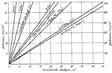 где V - суммарная вместимость баллонов, л; P - давление воздуха в баллонах, МПа (кгс/см2).