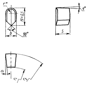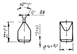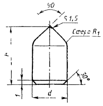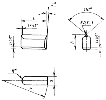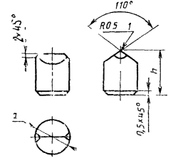 Примечание. По заказу потребителя допускается изготовление изделий с одной или двумя фасками 1 × 45° у основания, а изделий Г5110 и Г5111 - с задним углом 25°. Форма Г53