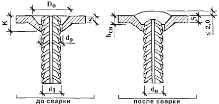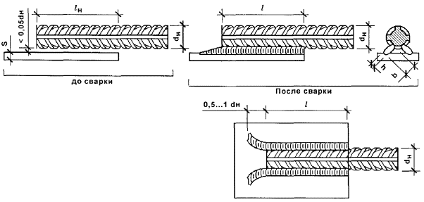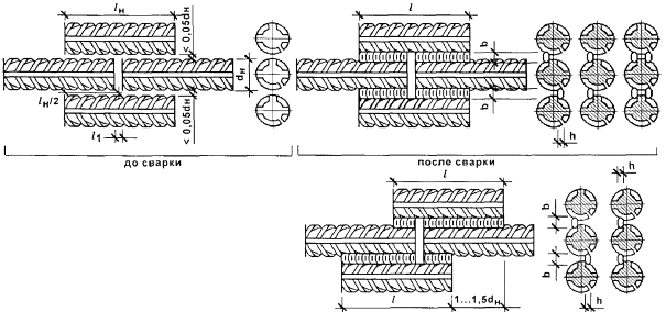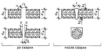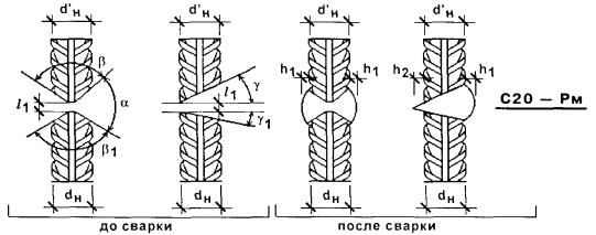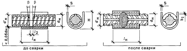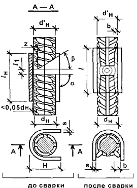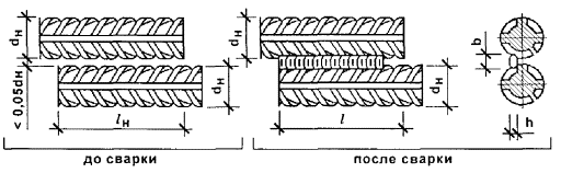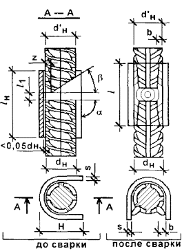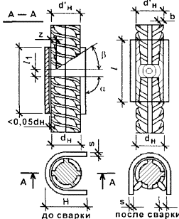 Геометрические параметры сварных соединений горизонтальных арматурных стержней