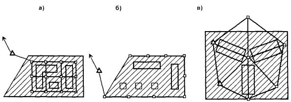 а) в виде строительной сетки; б) в виде красных линий; в) в виде центральной системы