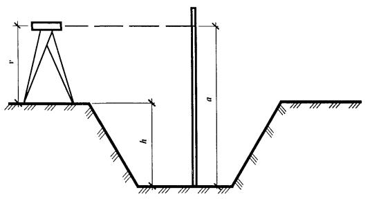 Оно имеет значительные преимущества перед геометрическим (экономия времени, удобство и простота измерений, определение отметок нескольких точек с одной станции). При контроле тригонометрическим нивелированием для определения глубины котлована h измеряют вертикальный угол v и горизонтальное расстояние d с одной станции прибора. Тогда: h = d tgv + v - i, где: i - высота прибора; v - высота визирования на рейку. На практике всегда высота визирования равна высоте прибора, поэтому формула принимает вид: h = d tgv. При рытье глубоких и широких котлованов по мере их углубления отметки от рабочего репера (строительного нуля) постепенно передают по уступам на дно геометрическим нивелированием, причем для контроля передача осуществляется или дважды одним способом, или двумя различными способами. Неглубокие котлованы контролируются геометрическим нивелированием с одной станции с применением трех- или четырехметровых реек. При небольшой глубине котлована (до 3 м) контроль за его разработкой следует осуществлять методом геометрического нивелирования с помощью нивелира и 3 - 4-метровой рейки. Контроль осуществляется по проектной высоте, рассчитанной от горизонта инструмента. Нивелир устанавливают на бровку и по рейке, поставленной на дно, берут отсчет а. Глубина котлована h вычисляется по формуле: h = а - v, где: v - высота инструмента. Разработку грунта механизированным способом прекращают за 5 - 10 см до проектной отметки, чтобы не нарушить целостность грунта. Доведение дна котлована до проектной отметки выполняется вручную. Для этого в небольших углублениях с помощью нивелира через 4 - 5 м по всей площади дна котлована забивают колья таким образом, чтобы верхний срез находился на проектной отметке. Часть кольев можно устанавливать с помощью нивелира, а часть - с помощью визирок. После окончательной зачистки дна выполняют исполнительную съемку. На дне котлована параллельно основным осям разбивают сетку квадратов со сторонами 5 - 10 м в зависимости от размеров котлована и геометрическим нивелированием определяют отметки их вершин.