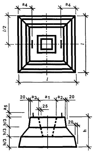 МОНТАЖ СБОРНЫХ ЖЕЛЕЗОБЕТОННЫХ ФУНДАМЕНТОВ СТАКАННОГО ТИПАГОСТ 24476-80* Фундаменты железобетонные сборные под колонны каркаса межвидового применения для многоэтажных зданий. Технические условия. ТУ 5812-009-03984988-99 Фундаменты железобетонные сборные стаканного типа. ТЕХНИЧЕСКИЕ ТРЕБОВАНИЯ Входной контроль сборных железобетонных фундаментов стаканного типа должен осуществляться в соответствии требованиями ГОСТ 24476-80*, ГОСТ 13015.0-83*, ГОСТ 13015.3-81*, технических условий и технологической документации, утвержденной в установленном порядке. ГОСТ 24476-80* Фундаменты железобетонные сборные под колонны каркаса межвидового применения для многоэтажных зданий. Технические условия. Стандарт распространяется на сборные железобетонные фундаменты стаканного типа, изготовляемые из тяжелого бетона и предназначенные для применения в многоэтажных каркасно-панельных общественных зданиях, производственных и вспомогательных зданиях промышленных предприятий из конструкций серий 1.020-1/83, 1.020.1-2с и возводимых в несейсмических и сейсмических районах, в грунтах и грунтовых водах при неагрессивной, слабо- и среднеагрессивной степенях воздействия на железобетонные конструкции. Стандарт не распространяется на фундаменты, предназначенные для применения в зданиях, возводимых на просадочных и вечномерзлых грунтах и на подрабатываемых территориях. Фундаменты подразделяют на типы: 1Ф - фундаменты под колонны с поперечным сечением размерами 300 ´ 300 мм; 2Ф - то же, под колонны с поперечным сечением размерами 400 ´ 400 мм. Марка фундаментов состоит из двух буквенно-цифровых групп, разделенных тире. Первая группа содержит обозначение типа фундамента, длину (ширину) подошвы и высоту фундамента в дециметрах (значение высоты округляют до целого числа). Вторая группа содержит обозначение несущей способности фундамента, а для фундаментов, предназначенных для эксплуатации в агрессивной среде, дополнительно содержит показатель проницаемости бетона, обозначаемый буквой: Н - нормальной проницаемости, П - пониженной проницаемости. Пример условного обозначения (марки) фундамента типа 1Ф с подошвой размерами 1800 ´ 1800 мм, высотой 750 мм, первой несущей способности, предназначенного для эксплуатации в неагрессивной среде: 1Ф18.8-1 То же, типа 2Ф с подошвой размерами 1500 ´ 1500 мм, высотой 900 мм, второй несущей способности, из бетона пониженной проницаемости: 2Ф15.9-2П Размеры фундаментов должны соответствовать приведенным в нижеследующей таблице.