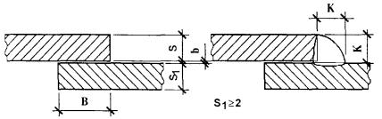 В соединениях толщиной более 16 мм, выполненных в монтажных условиях, допускается увеличение номинального значения размера b до 4 мм с одновременным уменьшением значения угла скоса кромок на 3°.