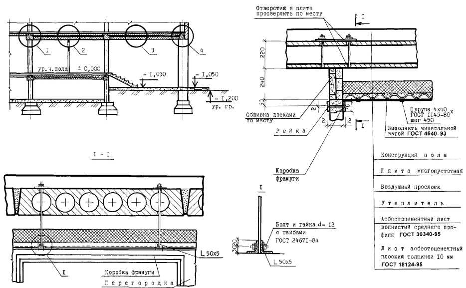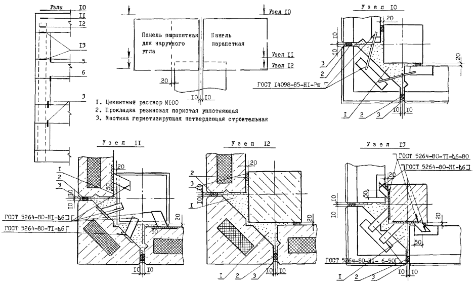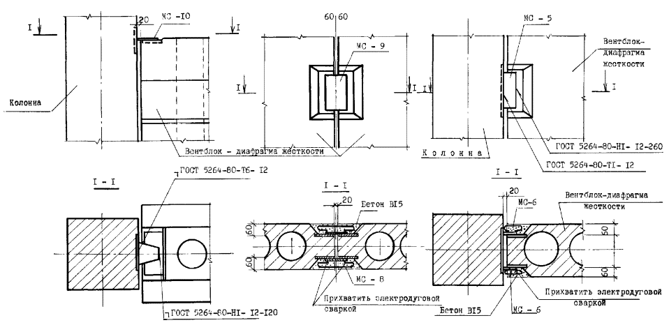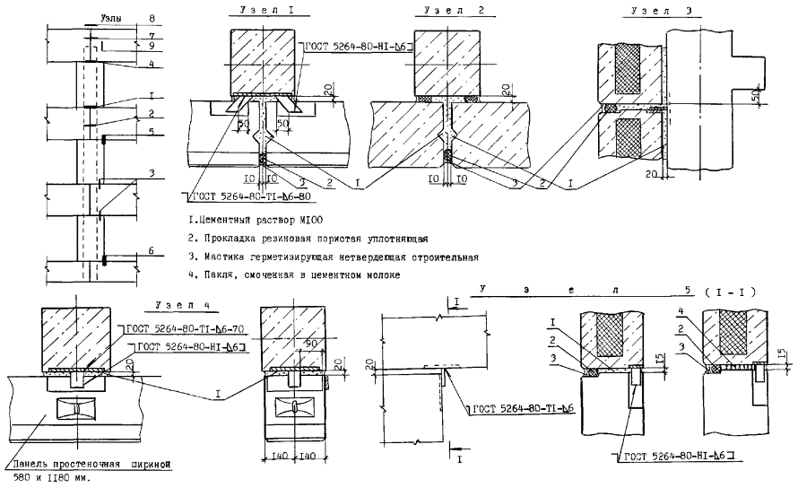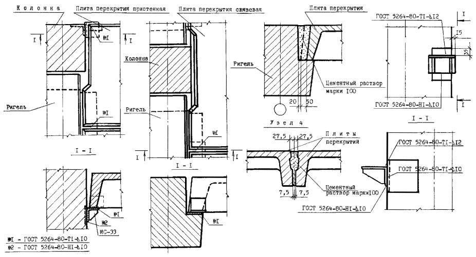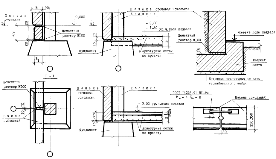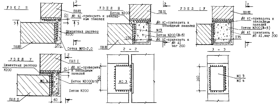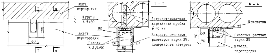 Узлы перегородок типа ПЦД-1м (ПЦД-1)