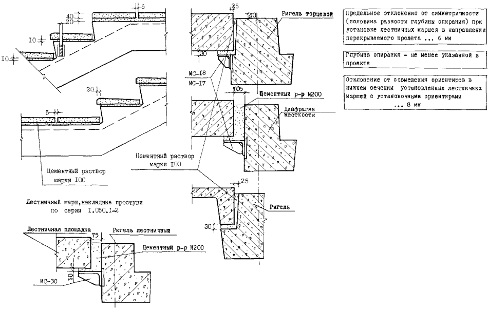 СОДЕРЖАНИЕ Пояснительная запискаСхемы входного и операционного контроля качества СМР составлены в соответствии с требованиями СНиП 3.01.01-85* «Организация строительного производства». Схемы входного и операционного контроля предназначены для линейных инженерно-технических работников, бригадиров и рабочих, работников отдела контроля качества СМР, работников лабораторной, геодезической и сварочной служб, осуществляющих самоконтроль, входной, операционный и приемочный контроль качества СМР. Схемы могут быть использованы: - работниками служб по подготовке строительного производства в качестве типовых для включения их в проекты производства СМР или разработки на их основе схем, отражающих специфику конкретных проектов зданий и сооружений; - работниками служб по подготовке кадров в качестве учебного пособия при подготовке, переподготовке и повышении квалификации рабочих и ИТР; - преподавательским составом высших и средних технических учебных заведений при подготовке инженерно-технических работников строительного профиля; - руководителями подразделений, основных функциональных отделов и служб, а также руководством строительных организаций при проверке знаний проектов и нормативных требований по качеству выполнения СМР у линейного персонала, а также при осуществлении инспекционного контроля качества СМР; - работниками авторского надзора проектных организаций; - работниками технического надзора заказчика, осуществляющими приемку выполненных работ, работниками служб архитектурно-строительного надзора, федеральных и региональных центров по лицензированию строительной деятельности и других организаций, осуществляющих надзор за строительством. Схемы входного и операционного контроля качества СМР составлены на основании требований строительных норм и правил, государственных стандартов, технических условий, типовой проектной документации и содержат: - основные требования к качеству применяемых материалов, конструкций и деталей; - перечень операций, подлежащих контролю в процессе выполнения строительно-монтажных работ; - перечень технических требований, подлежащих соблюдению при выполнении строительно-монтажных работ; - схемы основных монтажных узлов; - основные требования к качеству при приемке законченных этапов и видов работ. Строительные конструкции, изделия, материалы и инженерное оборудование, поступающие на строительную площадку, должны пройти входной контроль. Производители работ (мастера) обязаны проверять путем внешнего осмотра и выполнения необходимых замеров соответствие качества поступающих конструкций, изделий, материалов и инженерного оборудования требованиям рабочих чертежей, государственных стандартов, технических условий. При выполнении входного контроля на комплектовочных базах прорабу (мастеру) должны быть представлены документы (паспорта, сертификаты, акты и т.д.), подтверждающие качество поставляемых материалов и изделий. При возникновении сомнений в качестве поставляемых материалов прораб (мастер) обязан потребовать контрольной проверки поступивших материалов и изделий. Входной контроль должен предотвратить запуск в производство материалов, конструкций и изделий, не соответствующих требованиям проектной и нормативно-технической документации. На строительной площ