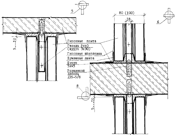 Узлы перегородок типа ПЦД-2м (ПЦД-2)