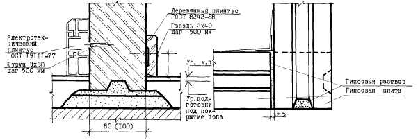 - по окончании отделочных работ устанавливается электротехнический плинтус по ГОСТ 19111-77 или деревянный - по ГОСТ 8242-88.