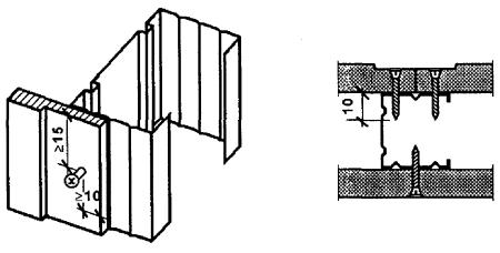 Материалом обшивки являются цементностружечные плиты по ГОСТ 26816-86 толщиной 10 мм. Перед установкой обшивок в проектное положение в ней просверливаются и зенкуются отверстия под шурупы. Крепление цементностружечных плит к каркасу осуществляется шурупами 3 ´ 30 мм, 3,5 ´ 40 мм по ГОСТ 1145-80* с шагом 300 мм.