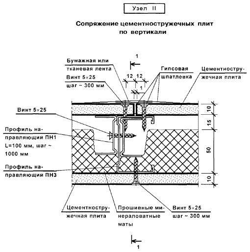 Сопряжение гипсоволокнистых листов по вертикали |