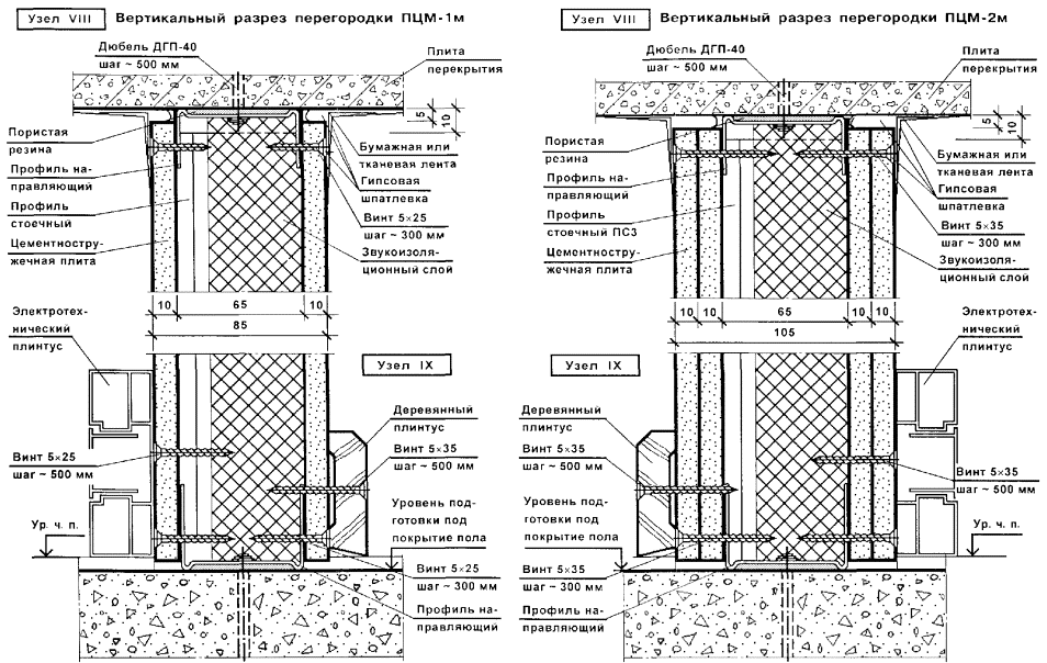 Узлы перегородок типа ПЦМ-1м (ПЦМ-1)
