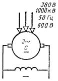 с указанием зажимов, щеток и числовых данных, например, 600 В, 1000 кВ, 50 Гц