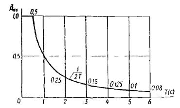 Рис. 5. График нормированного коэффициента динамичности вектора углового ускорения вращения сейсмического воздействия 2.17. Сейсмическое воздействие имеет произвольное направление в пространстве (см. п. 2.3 СНиП II-7-81). Ориентация в пространстве векторов ускорения поступательного движения и углового ускорения вращения грунтового основания сооружения определяется направляющими косинусами. Вектор ускорения