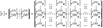 Здесь [Mi] - полная матрица инерционных параметров системы, структура которой показана в табл. 5, а [Mi] - ее составляющие, соответствующие обособленным составляющим [ri] или [δi]. 2.11. Отдельно для каждой из обособленных составляющих [Аi] или [Bi] (если они имеются) решается задача на собственные значения (собственные числа и векторы) по частотным уравнениям. Для каждой системы эти уравнения в прямой или обратной форме имеют соответственно вид: где