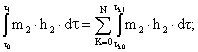 где tk0 и tk1 - моменты времени, соответствующие началу (tk0) и окончанию (tk1) k-го интервала времени, в течение которого происходит возврат конденсата по конденсатопроводу, находящегося в интервале времени t1 - t0, ч; N - количество интервалов, во время которых происходит возврат конденсата по конденсатопроводу. 2.10. При оценивании погрешности измерений тепловой энергии составляющие погрешности должны быть представлены с учетом влияния измеряемых (определяемых) расхода, температуры, давления, энтальпии, плотности теплоносителя на результат измерений тепловой энергии. 2.11. При реализации уравнений измерений (в средствах измерений, методиках выполнения измерений и схемах узлов учета тепловой энергии и теплоносителя) их, как правило, преобразовывают в соответствии с правилами математики, энтальпию h и плотность r определяют по соответствующим уравнениям, а интегралы заменяют на суммы. Энтальпию h и плотность r теплоносителя определяют по уравнениям, приведенным в справочном приложении. Допускается в обоснованных случаях определять энтальпию h и плотность r теплоносителя по другим уравнениям, утвержденным в установленном порядке, имеющим оценки погрешности по сравнению с данными ГСССД. Интегралы заменяют на соответствующие суммы, например