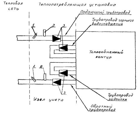 3. Теплообменный контур - теплопотребляющая установка (система теплопотребления), или источник тепловой энергии, или их часть, имеющие один подающий и один обратный трубопроводы, с помощью которых они подсоединены к тепловой сети.