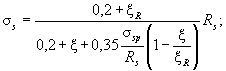 Определяем относительную высоту сжатой зоны бетона ξ согласно формуле (33) Рекомендаций ξ = (365 · 4,02 · 10-4 + 1,069 · 1,812 · 10-4 - - 365 · 1,57 · 10-4) / (27,5 · 0,18 · 0,269) = 0,213. Поскольку ξ < ξR (0,213 < 0,413), высоту сжатой зоны определяем по формуле (35), предварительно найдя коэффициент gs6 для дополнительной высокопрочной арматуры согласно СНиП 2.03.01-84*.