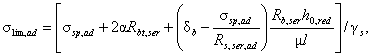 Граничное значение относительной высоты сжатой зоны ξR определяем по формуле (25) СНиП 2.03.01-84*, принимая коэффициент gbr2 = 1. Затем по формуле (26) СНиП 2.03.01-84* определяем w = a - 0,008 Rb = 0,85 - 0,008 · 27,5 = 0,63 и с учетом п. 3.12 СНиП 2.03.01-84* вычисляем ξR при ssR = Rsp,ad + 400 - ssp,ad - Dssp,ad = slim,ad + 400 - ssp,ad - Dssp,ad = = 1069 + 400 - 970 - 0 = 499 МПа;
