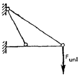 Рис. 63. Расчетная схема кронштейна Рис. 64. Основная система при расчете кронштейна методом сил (верхняя наклонная ветвь - х1, нижняя - x2) Несущая способность балки должна удовлетворять большему из двух указанных условий, обеспечивающих несущую способность усиленной конструкции по моменту и поперечной силе. 3.51. В случаях, когда кронштейн усиления опирается непосредственно на колонну, необходимо проверить балку на отрыв ее от опоры разгружающими силами при отсутствии временной нагрузки. 3.52. Расчет кронштейнов выполняется на усилие Funl; расчетную схему кронштейнов с гибкими элементами решетки рекомендуется принимать в виде статически неопределимой системы. Для расчета принимается половина кронштейна, а поскольку сечение нижнего пояса кронштейна на оси симметрии не поворачивается или поворачивается на относительно малую величину, то его можно считать защемленным в этом месте (рис. 63, 64). Расчет рекомендуется выполнять методом сил, принимая неизвестными усилия в растянутых элементах. При определении перемещений от единичных неизвестных усилий следует учитывать продольные силы и изгибающие моменты. Влиянием поперечной силы можно пренебречь. Для предварительного подбора сечений можно принять расчетную схему кронштейна в виде фермы с шарнирами в узлах, но при этом сечение нижнего пояса, подбираемое по нормальной силе, следует увеличить примерно в два раза. 3.53. Учитывая возможные потери усилия от обмятия опор и обжатия упорных устройств, предварительное натяжение кронштейнов осуществляют силой, которая на 15 % больше расчетной. Особенности расчета усиления внецентренно сжатых элементовУсиление железобетонными обоймами, рубашками и наращиванием3.54. Прямоугольные железобетонные центрально-сжатые со случайными эксцентриситетами и внецентренно сжатые усиленные элементы рассчитываются как монолитные. При расчете следует учитывать влияние прогиба на их несущую способность, как правило, путем расчета конструкций по деформированной схеме. Допускается производить расчет конструкций по недеформированной схеме, учитывая при гибкости l0 / i > 14 влияние прогиба конструкций на его прочность, определяемую из условий (39) и (50) путем умножения на коэффициент η по СНиП 2.03.01-84*. 3.55. При определении расчетных сопротивлений бетона обойм и наращиваний, а также расчетных сопротивлений рабочей арматуры, находящихся в сжатой зоне сечения, следует учитывать коэффициенты условий работы бетона и арматуры gbi и gsi по СНиП 2.03.01-84* и дополнительные коэффициенты условий работы gbri и gsri, учитывающие особенности работы усиленных элементов (см. п. 3.13). 3.56. Методика расчета внецентренно и центрально-сжатых элементов, усиленных обоймами, рубашками и наращиванием, приведенная в настоящих Рекомендациях, предполагает плотное примыкание бетона усиления к опорным частям конструкций, а также заделку арматуры в бетон в соответствии с СНиП 2.03.01-84* при ее расположении в растянутой зоне. 3.57. Несущую способность по нормальным сечениям внецентренно сжатых конструкций, усиленных обоймами, рубашками и наращиванием, рекомендуется определять по СНиП 2.03.01-84* и настоящим Рекомендациям. При этом должны быть учтены особенности, связанные с применением различных видов арматуры и классов бетона в усиливаемых и усиливающих частях сечения (пп. 3.7, 3.11 - 3.13). Расчет усиленных обой