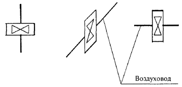 В наименованиях узлов управления системами отопления и теплоснабжения установок указывают номер узла. Пример - Узел управления 1; Узел управления 2. Примеры выполнения схем узлов управления системами отопления и теплоснабжения установок приведены в приложении Г. На узлах управления системами отопления и теплоснабжения установок, а также на узлах (выносных элементах) схем систем для запорно-регулирующей арматуры указывают на полке линии-выноски диаметр (тип) арматуры и под полкой - обозначение арматуры по каталогу (обозначение документа). Аналогичные сведения приводят на узлах для других элементов системы. При необходимости к схеме узла управления системами отопления и теплоснабжения установок выполняют спецификацию по форме 7 ГОСТ 21.101 или чертежи (планы, разрезы, схему и спецификацию) узла управления системами. Пример выполнения схемы узла (выносного элемента) системы приведен в приложении Г. 6.2.7 На схемах систем вентиляции и кондиционирования указывают: - воздуховоды, их диаметры (сечения) и количество проходящего воздуха в м3/ч (рисунок 14); - графическое обозначение изолированных участков воздуховода (при необходимости); - графическое обозначение участков воздуховода с огнезащитным покрытием; - отметки уровня оси круглых и низа прямоугольных воздуховодов; - оборудование вентиляционных установок; - контуры технологического оборудования, имеющего местные отсосы (в сложных случаях); - лючки для замеров параметров воздуха и чистки воздуховодов с указанием на полке линии-выноски марки лючка (п. 4.6) и под полкой - обозначения документа (рисунок 15); - местные отсосы, их обозначения и обозначения документов. Для встроенных местных отсосов, поставляемых комплектно с технологическим оборудованием, обозначение местного отсоса и обозначение документа не указывают; - регулирующие устройства, воздухораспределители, нетиповые крепления (опоры) и другие элементы систем вентиляции и кондиционирования с указанием на полке линии-выноски обозначения элемента системы и под полкой - обозначения документа. При этом для нетиповых изделий на полке линии-выноски указывают наименование и буквенно-цифровое обозначение изделия (п. 8.4) и под полкой - обозначение эскизного чертежа. Примеры выполнения схем систем вентиляции приведены в приложении Д. Рисунок 14 Рисунок 15 6.2.8 В наименовании схемы системы отопления для двух и более систем в здании указывают номер системы. В наименовании схемы системы теплоснабжения установок указывают обозначения установок. В основной надписи наименования схем систем отопления и теплоснабжения установок указывают полностью. Пример - Схема системы отопления 1; Схема системы теплоснабжения установок П1 - П3. Над схемами наименования схем систем отопления и теплоснабжения установок указывают сокращенно. Пример - Система отопления 1; Система теплоснабжения установок П1 - П3. 6.2.9 В наименованиях схем систем вентиляции и кондиционирования указывают обозначения систем. В основной надписи наименования схем систем вентиляции и кондиционирования указывают полностью. Пример - Схемы систем П5, В8. Над схемами наименования схем систем вентиляции и кондиционирования указывают сокращенно. Пример - П5, В8. 7 Чертежи установок систем7.1 Чертежи установок систем отопления, вентиляции и кондиционирования (далее - чертежи установок) сл