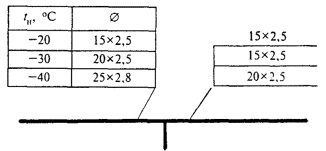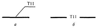 Примеры изображения осевого вентилятора на схеме, выполненной в аксонометрической проекции, приведены на рисунке 1. Рисунок 1 4.9 Условные графические изображения основного подъемно-транспортного оборудования принимают по ГОСТ 21.112 и выполняют в масштабе чертежа. Подъемно-транспортное оборудование, условные графические изображения которого в указанном стандарте не приведены, изображают упрощенно по аналогии, учитывая конструктивные особенности конкретного оборудования. 4.10 При изображении трубопровода на чертеже (схеме) буквенно-цифровые обозначения указывают на полках линий-выносок в соответствии с рисунком 2а и (или) в разрывах линий трубопроводов в соответствии с рисунком 1б. Рисунок 2 4.11 При указании размера диаметра перед размерным числом следует писать знак «Æ». Обозначение диаметра трубопровода или воздуховода наносят на полке линии-выноски в соответствии с рисунком 3а. В том случае, когда на полке линии-выноски наносят буквенно-цифровое обозначение трубопровода по 4.10, диаметр трубопровода указывают под полкой линии-выноски в соответствии с рисунком 3 б, в. Рисунок 3 Для трубопроводов из стальных водогазопроводных труб (ГОСТ 3262) указывают диаметр условного прохода и толщину стенки. Для трубопроводов из стальных электросварных труб указывают наружный диаметр и толщину стенки. Для трубопроводов из других труб указывают аналогичные сведения в соответствии с требованиями стандартов на трубы (сортамент, технические условия). В обозначении сечения прямоугольных воздуховодов, нанесенных на плане чертежей систем и расположенных в горизонтальной плоскости, первой цифрой указывают его ширину, второй - высоту. 4.12 Примеры построения условных графических обозначений элементов систем приведены в приложении А ГОСТ 21.205. Примеры построения условных обозначений и упрощенных графических изображений элементов систем в схемах, выполняемых в аксонометрических проекциях, приведены в приложении Б ГОСТ 21.205. 4.13 Условные обозначения приборов, средств автоматизации и линий связи следует принимать по ГОСТ 21.404. Пример выполнения принципиальной технологической схемы вентиляционной системы с указанием приборов, средств автоматизации и линий связи приведен в приложении В ГОСТ 21.205. Буквенные обозначения измеряемых величин и функциональных признаков приборов, указанные на схеме и в таблице (приложение В ГОСТ 21.205), приняты по ГОСТ 21.404. Примеры буквенных обозначений измеряемых величин (ГОСТ 21.404) приведены в таблице 4. Примеры буквенных обозначений функциональных признаков приборов (ГОСТ 21.404) приведены в таблице 5. Таблица 4