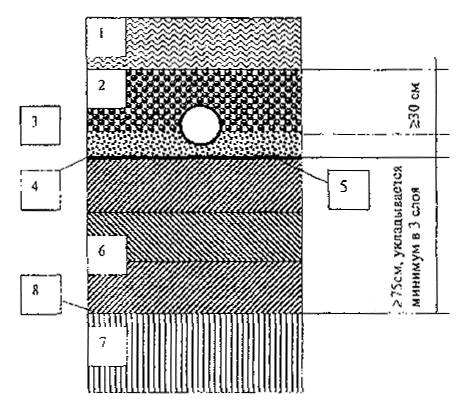 8. Для водоотводящего слоя должны применяться промытые материалы. Предпочтение отдается материалам с частицами круглой формы. Содержание карбоната кальция в водоотводящем слое не должно превышать 20 % от общего веса.