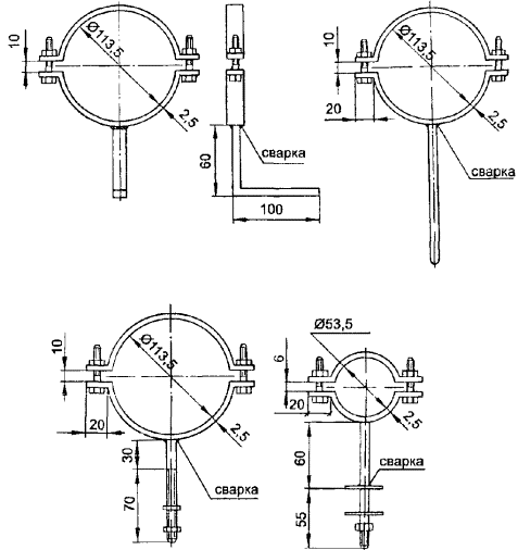 где d - наружный диаметр трубопровода, мм; ∆l - определяется по формуле (5), мм. 2.2.9. Для компенсации линейных удлинений, помимо компенсаторов, перечисленных в п. 2.2.7, применяются также петлеобразные компенсаторы (рис. 2.2.5). Скользящей называется опора, фиксирующая трубопровод, но не препятствующая его осевому перемещению; неподвижной - опора, не позволяющая трубопроводу перемещаться в точке крепления. Конструкции скользящей опоры (одинарной и двойной) представлены в разделе 2.4 настоящего «Руководства …». Неподвижная опора устраивается из той же самой скользящей опоры, зажатой между двумя муфтами, или между двумя соединительными деталями (например, между двумя тройниками), или между соединительной деталью и муфтой. Допускается также устанавливать скользящую опору между лепестками из полипропилена, специально навариваемыми на трубу по окружности. Неподвижная опора может быть выполнена также с помощью металлического хомута с резиновой или пластмассовой прокладкой, одеваемого на муфту. Хомут обжимает муфту с помощью одного или двух болтов. Конструкции хомутов приведены в разделе 2.4 настоящего «Руководства …». 2.2.11. Расстояния между скользящими опорами на горизонтальном трубопроводе из PP-R следует принимать по табл. 2.2.2. Таблица 2.2.2 Расстояния между скользящими опорами на горизонтальном трубопроводе из PP-R (размеры в мм)