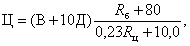 где Ц - расход цемента на м3 бетона, кг; В - водопотребность смеси, определенная по п. 3; Д - воздухосодержание по п. 4, %; Rб - прочность бетона в 28 дней, МПа; Rц - активность (марка) цемента, МПа.