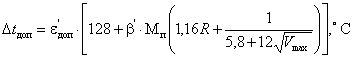в конце ее охлаждения, °С; При вычислении nг и пв из двух модулей берется отношение меньшого по значению к большему. Площадь сечения конструкции по оси симметрии не учитывается. 3. При условии предъявления специальных требований к конструкции по трещиностойкости их распалубливание необходимо производить с соблюдением следующих требований: а) для конструкции с модулем поверхности Мп менее 2: должен прекратиться рост температуры бетона в центре конструкции от экзотермического разогрева; перепад температур между центром конструкции и средней температурой наружного воздуха (в ближайшие 10 дней после распалубки) не более 32 °С при оптимальной теплоизоляции (см. п. 1) и 27 °С при теплоизоляции большей оптимальной; б) с модулем поверхности Мп более 2: распалубка допускается при разности температур поверхности и воздуха, не превышающей допустимой величины Dtдоп, определяемой по формулам: для конструкций с раскрытыми охлаждаемыми поверхностями: