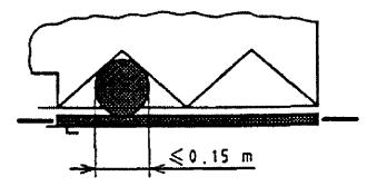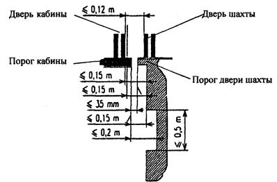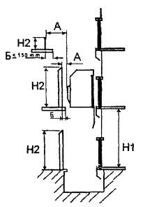 Рис. 1. Маятник для жесткого удара 1 - ударное кольцо; 2 - базисная точка для измерения высоты падения; 3 - крепление пускающего приспособления Рис. 2. Маятник для нежесткого удара 1 - стержень с нарезанной резьбой; 2 - базисная точка для измерения высоты падения в плоскости максимального диаметра; 3 - кожаный мешок; 4 - стальной диск; 5 - крепление пускающего приспособления Рис. 3. Высота падения на испытательном стенде 1 - рама; 2 - испытываемая стеклянная панель; 3 - маятник; 4 - уровень пола, относящийся к испытываемой стеклянной панели; Н - высота падения Приложение 12ДОПУСТИМЫЕ РАЗМЕРЫ СТРОИТЕЛЬНОЙ ЧАСТИ ПРИ УСТАНОВКЕ ЛИФТОВ В СУЩЕСТВУЮЩИХ ЗДАНИЯХ1. Размеры в свету дверного проема для доступа в машинное помещение: ширина - не менее 0,6 м; высота - не менее 1,6 м. 2. Вход в машинное помещение допускается через люк, отвечающий требованиям п. 4.3.7. При выходе из люка должна быть свободная площадка с размерами не менее 0,8×0,8 м, а также должны быть приняты меры, предотвращающие возможность падения людей (ограждения, перила и т.д.). 3. Высота в свету зон обслуживания оборудования в машинном помещении не менее 1,6 м, высота в свету прохода к зонам обслуживания оборудования не менее 1,8 м. 4. Размеры зоны обслуживания (свободная площадка) перед расположенными в машинном помещении устройствами управления: а) глубина, измеренная от наружной поверхности шкафа или панели, не менее 0,6 м; б) ширина - не менее 0,450 м. 5. Ширина проходов к зонам обслуживания механического оборудования - не менее 0,4 м. 6. Высота прохода к машинному и блочному помещениям не менее 1,8 м, при этом допускается местное уменьшение высоты (пороги, балки и др.) до 1,5 м. 7. Разница в уровнях пола подхода к машинному (блочному) помещению и полом машинного (блочного) помещения не более 1,0 м. Допускается установка скоб (скобы) с шагом 0,35 м на стене машинного (блочного) помещения со стороны открытия двери. При этом рядом со скобами должен быть установлен поручень высотой не менее 1,0 м над уровнем порога дверей. 8. Высота шахты лифта, оборудованного лебедкой с канатоведущим шкивом или барабаном трения, должна быть такой, чтобы при противовесе, находящемся на полностью сжатых буферах, выполнялись требования п. 3.11.1 а), б), в), а над кабиной должно быть предусмотрено свободное пространство, достаточное для размещения «прямоугольного блока» с размерами не менее 0,35×0,6×0,7 м, лежащего на одной из своих граней. У лифтов с прямой подвеской тяговые элементы и их крепления могут находиться в этом пространстве при условии, что тяговые элементы расположены на расстоянии, не превышающем 0,15 м, по крайней мере, от одной вертикальной поверхности «прямоугольного блока». 9. При нахождении кабины на полностью сжатых буферах одновременно должны выполняться следующие условия: а) в приямке должно быть предусмотрено свободное пространство, достаточное для размещения «прямоугольного блока» с размерами не менее 0,4×0,6×0,9 м, лежащего на одной из своих граней; б) зазор между дном приямка и самыми нижними частями кабины должен быть не менее 0,45 м. Зазор может быть уменьшен до 0,05 м в пределах измеренного по горизонтали расстояния 0,2 м между: фартуком или деталями вертикально-раздвижной двери и примыкающей стеной (стенами) шахты; самыми нижними частями кабины и направляющей. Приложение 13НОРМЫ БРАКОВКИ СТАЛЬНЫХ КАНАТОВ1. Браковка находящихся в работе стал