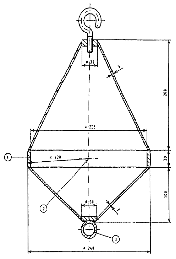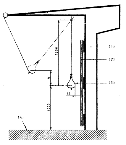 Размеры, приведенные в таблице, соответствуют: ГОСТ Р 51336-99 «Безопасность машин. Безопасные расстояния для предохранения верхних конечностей от попадания в опасную зону»; стандарту EN294: 1992 «Безопасность механизмов. Зазоры безопасности, не позволяющие дотянуться до опасных участков». Приложение 11ПОРЯДОК ПРОВЕДЕНИЯ ИСПЫТАНИЙ СТЕКЛЯННЫХ ПАНЕЛЕЙ НА УДАР МАЯТНИКОМ1. Испытательный стенд. 1.1. Маятник для жесткого удара. Маятник для жесткого удара представляет собой устройство (рис. 1), состоящее из стального ударного кольца и стального корпуса. Корпус заполняется свинцовыми шариками диаметром 3,5 ± 0,25 мм, посредством которых суммарную массу маятника доводят до величины 10 ± 0,01 кг. 1.2. Маятник для нежесткого удара. Маятник для нежесткого удара представляет собой мешок (рис. 2), сделанный из кожи и заполненный свинцовыми шариками диаметром 3,5 ± 1 мм, посредством которых суммарную массу маятника доводят до величины 45 ± 0,5 кг. 1.3. Подвеска маятника. Маятник должен быть подвешен на стальном канате диаметром 3 мм таким образом, чтобы горизонтальное расстояние между наружным краем свободно подвешенного маятника и испытуемой панелью не превышало 15 мм. Длина подвески (расстояние от нижней части крюка до точки, наносящей удар по испытываемой панели) должна быть не менее 1,5 м. 1.4. Тянущее и отпускающее приспособление. Для удара маятник отклоняют от вертикали посредством тянущего и отпускающего приспособления и таким образом поднимают на высоту, необходимую согласно пп. 3.2 и 3.3. В момент отпускания отпускающее приспособление не должно сообщать маятнику никакого дополнительного импульса. 2. Требование к стеклянной панели. Для проведения испытаний поставляются полностью готовые стеклянные дверные панели в сборе, включая направляющие элементы. Стеклянные стенные панели должны иметь требуемые размеры и крепления. Панели должны крепиться к раме или иной подходящей конструкции таким образом, чтобы во время испытаний в местах крепления была исключена возможность каких-либо деформаций (жесткое крепление). 3. Методика испытаний. 3.1. Испытания должны проводиться при температуре 23 °С ± 2 °С. Непосредственно перед испытаниями панели должны быть выдержаны при этой температуре не менее 4 часов. 3.2. Испытание на удар жестким маятником должно проводиться с помощью устройства, описанного в п. 1.1, при высоте падения 500 мм (рис. 3). 3.3. Испытание на удар нежестким маятником должно проводиться с помощью устройства, описанного в п. 1.2, при высоте падения 700 мм (рис. 3). 3.4. Маятник должен быть поднят на необходимую высоту и отпущен. Он должен ударить панель посередине ее ширины и на высоте 1,0 ± 0,05 м от уровня пола, назначенного для данной панели. Высота падения представляет собой расстояние по вертикали между базисными точками (рис. 3). 3.5. Испытания на жесткий и нежесткий удар проводятся по одному разу на одной и той же панели. 4. Оценка результатов. Требования настоящих Правил считаются выполненными, если после таких испытаний: а) нет полного разрушения панели; б) в панели нет трещин; в) в панели нет отверстий; г) панель не вышла из своих направляющих; д) направляющие панели не имеют остаточной деформации; е) стеклянная поверхность не имеет трещин и повреждений, за исключением отметки диаметром не более 2 мм. 5. Отчет об испытаниях. Отчет об испытании должен содержать следующую инфор