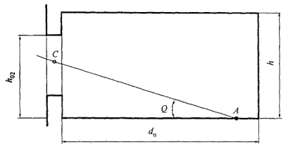 где Аф.н - площадь нижнего отверстия фонаря, м2; Аф.в - площадь верхнего отверстия фонаря, м2; hс.ф - высота светопроводной шахты фонаря, м. Рф.в, Рф.н - периметр верхнего и нижнего отверстий фонаря соответственно, м. То же, с отверстиями в форме круга - по формуле iф = (rф.в + rф.н)/2hс.ф, (6) где rф.в, rф.н - радиус верхнего и нижнего отверстий фонаря соответственно. Коэффициент t0 определяют по формуле (Б.6), r2 - по таблице Б.9 приложения Б, коэффициент запаса Кз - по таблице 3 СНиП 23-05. Вычисляют значение геометрического КЕО в первой точке характерного разреза помещения по формуле Повторяют вычисления для всех точек характерного разреза помещения до Nj включительно (где Nj - число точек, в которых производят расчет КЕО). Определяют eср по формуле eср = (e1 + e2 + e3 + ... + eNj)/Nj. (8) Последовательно для всех точек вычисляют прямую составляющую КЕО sпр по формуле sпр = ejt0/Kз. (9) Определяют отраженную составляющую КЕО sотр, значение которой одинаково для всех точек, по формуле sотр = eср(r2 - 1)t0/K3. (10) Определяют расчетное значение КЕО евp в каждой точке характерного разреза с учетом отраженного от поверхностей помещения и прямого света по формуле евp = sпр + sотр. (11) 7.10 Проверочный расчет среднего значения КЕО в плоскости характерного разреза помещения при верхнем освещении следует выполнять по формуле (Б.8) приложения Б. Число расчетных точек в плоскости характерного разреза помещения должно быть не менее пяти. РАСЧЕТ КЕО ОТ СВЕТОВЫХ ПРОЕМОВ, ИМЕЮЩИХ ФОРМУ, ОТЛИЧНУЮ ОТ ПРЯМОУГОЛЬНИКА7.11 При расчете КЕО в помещениях со световыми проемами в наружных стенах круглой, полукруглой или эллиптической формы такие светопроемы следует заменять светопроемами прямоугольной формы одинаковой площади, для чего световой проем описывают прямоугольником и определяют его размеры (рисунок 14). 7.12 В помещениях со световыми проемами круглой формы в покрытии значение геометрического КЕО eВi, %, следует определять по формуле eВi = 100sin2(q/2), (12) где q - угол, образуемый линиями, проведенными из расчетной точки А к границам светопроема (рисунок 15), град. r - радиус окружности; а - большая полуось эллипса; b - малая полуось эллипса Рисунок 14 - Замена круглого (а), полукруглого (б) и эллиптического (в) светопроемов эквивалентными прямоугольными q - угол, под которым виден диаметр светопроема из расчетной точки А Рисунок 15 - Схема для определения КЕО от светопроемов круглой формы в покрытии 8 ПРОЕКТИРОВАНИЕ ЕСТЕСТВЕННОГО И СОВМЕЩЕННОГО ОСВЕЩЕНИЯ НЕКОТОРЫХ ТИПОВЫХ ПОМЕЩЕНИЙЖИЛЫЕ ПОМЕЩЕНИЯ8.1 Для обеспечения естественного освещения жилых помещений, отвечающего требованиям СНиП 23-05, отношение глубины помещения dп к высоте верхней грани светового проема над уровнем пола h02 (рисунок 16), как правило, не должно превышать 2,5. 8.2 Нормированные значения КЕО при боковом освещении в жилых зданиях, располагаемых в административных районах различных групп по ресурсам светового климата, следует принимать по таблице 4. При разработке типовых проектов жилых зданий, предназначенных для расположения в административных районах второй, третьей, четвертой и пятой групп по ресурсам светового климата, ориентация которых по сторонам горизонта неизвестна, значение КЕО следует определять согласно 5.3 настоящего Свода правил, при этом коэффициент светового климата mN следует принимать для северной ориентации световых проемов по сторонам гор