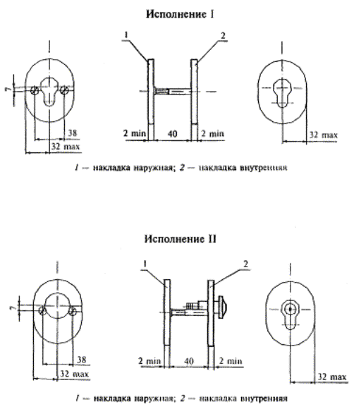 Рисунок В.6 - Пример замка врезного цилиндрового (типов ЗВ4 и ЗВ7) и сувальдного (тип ЗВ9)