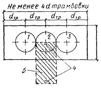 где rс - расстояние от эпицентра взрыва, м, Кс - коэффициент, зависящий от свойств грунта в основании охраняемого сооружения; значение для водонасыщенных глинистых грунтов равно 1,5 · 9 = 13,5; α - коэффициент, принимаемый для камуфлетного взрыва, 1,2. 3.265. Взрывные работы необходимо производить сразу после замачивания. Разрыв между окончанием замачивания и взрывами, в зависимости от размеров площадки, составляет от 3 до 8 ч. За это время следует выполнить демонтаж инвентарных трубопроводов, зарядку и тампонирование скважин, нивелирование поверхностных и глубинных марок. 3.266. Перед опусканием заряда в скважину необходимо проверить проходимость заряда по транспортной трубе. Заряды водостойкого аммонита в стандартной упаковке (например, ПН-А6-Ж8) диаметром 90 мм ± 10 мм, длиной 500 мм ± 20 мм и массой 3,25 кг ± 0,15 кг следует опускать в зарядную камеру на шпагате. Опускать заряды на детонирующих шпурах или проводах, идущих к детонаторам, категорически запрещается. При использовании водостойких типов гранулированного ВВ в качестве промежуточных детонаторов следует применять прессованные и литые шашки Т-400 и ТГ-500. 3.267. Забойку подготовленных к взрывам скважин после установки глубинных зарядов ВВ следует выполнять песком и водой. При использовании транспортной трубы диаметром 50 мм и менее забойка должна производиться водой. В случае отказа такая забойка позволит заменить электродетонаторы и произвести глубинный взрыв, не поднимая заряд ВВ на поверхность. 3.268. В целях эффективного уплотнения и снижения сейсмического воздействия замедление между взрывами должно составлять не менее 3-5 с. При использовании транспортных труб диаметром 100 мм и более, как правило, применяется огневой способ взрывания, а при диаметре 50 мм и менее инициирование заряда производится только электрическим способом с применением пиротехнических реле. Примечание. Огневой способ взрывания применительно к данному методу заключается в том, что инициирование взрыва патронированного ВВ, например 6ЖВ, производится детонирующим шнуром (ДШ), один конец которого закрепляется в самом заряде, а второй выходит на дневную поверхность. К свободному концу ДШ прикрепляется зажигательная трубка, состоящая из капсюля-детонатора и отрезка огнепроводного шнура. Длина огнепроводного шнура принимается из расчета, чтобы взрывник успел зажечь все трубки на скважинах данной серии взрывов и удалиться на безопасное расстояние. Длина зажигательного шнура на всех скважинах каждой серии взрывов (взрывы, как правило, выполняются мелкими сериями по 5 шт.) назначается одинаковой (примерно 1,2-1,5 м), поэтому время замедления между взрывами составляет 5-10 с и обусловливается временем между двумя последовательными зажиганиями отрезков огнепроводного шнура. 3.269. Для безотказного взрывания следует применять для каждой скважины два электродетонатора с параллельным подключением или две нитки детонирующего шнура при огневом способе взрывания. В грозу взрывные работы не производятся. 3.270. По окончании взрывных работ необходимо как можно раньше произвести извлечение транспортных инвентарных труб. После извлечения и промывки каждой инвентарной трубы водой ее следует нарастить и повторно использовать в работе. При наращивании трубы необходимо использовать точечную сварку для того, чтобы приваренная ча