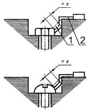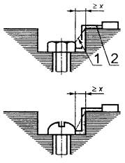 Пример 10 Электрический зазор между головкой винта и стенкой углубления слишком узкий, и его не учитывают. Измерение пути утечки - от винта до стенки, когда это расстояние равно X