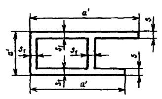 Черт. 2 Черт. 3 2.3. Предельные отклонения по толщине стенок (S1), образующих полые пространства (черт. 4, 5), должны соответствовать значениям, указанным в табл. 1 или 2 с коэффициентом 1,5 или на чертежах. (Измененная редакция, Изм. № 1). Черт. 4 Черт. 5 (Измененная редакция, Изм. № 1). 2.3а. Допускается увеличение предельных минусовых отклонений не более чем в 2,5 раза на размеры поперечного сечения или отдельные элементы профилей, подвергаемые у потребителя механической обработке с учетом припуска на механическую обработку, которые должны быть указаны в чертежах. (Введен дополнительно, Изм. № 2). 2.4, 2.5. (Исключены, Изм. № 1). Черт. 6 - 9. (Исключены, Изм. № 1). Таблица 1 мм