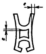* Таблица 5 исключена. 2.10. Профили должны быть прямыми. Продольное плавное отклонение от прямолинейности относительно любой плоскости на любом участке длиной 1 м, за исключением профилей, имеющих бульбу или хотя бы один клиновидный элемент, не должно превышать: 4 мм - на профилях с толщиной полок или стенок св. 4 до 10 мм включительно; 3 мм - на профилях толщиной полок или стенок свыше 10 мм. На профилях, имеющих бульбу или хотя бы один клиновидный элемент, с толщиной полки свыше 4 мм отклонение от прямолинейности относительно любой плоскости на любом участке профиля длиной 1 м не должно превышать 4 мм. По требованию потребителя на профилях с толщиной полок и стенок свыше 4 до 10 мм отклонение от прямолинейности не должно превышать 3 мм. (Измененная редакция, Изм. № 1). 2.11. На профилях с толщиной полок до 4 мм включительно, в том числе на профилях, имеющих бульбу или хотя бы один клиновидный элемент, допускается продольное отклонение от прямолинейности на 1 м длины, устраняемое путем приложения усилия не более 50 Н (5 кгс) на профиль, установленный на плоской плите. (Измененная редакция, Изм. № 1). 2.12. Общие допускаемые продольные отклонения от прямолинейности, скручивание профиля не должны превышать произведения допускаемого отклонения от прямолинейности, скручивания на 1 м на длину профиля в метрах. (Измененная редакция, Изм. № 1). 2.13. На профилях допускается плавная волнистость с высотой волны не более 1 мм, а на профилях, имеющих бульбу или хотя бы один клиновидный элемент - не более 2 мм. Количество таких волнистых мест не должно быть более одного на 1 м длины профиля. Волнистость с высотой волны до 0,2 мм не лимитируется. 2.14. Поперечное плавное отклонение от плоскостности (выпуклость и вогнутость) е профилей, характерные формы поперечного сечения которых приведены на черт. 14 - 18, не должно превышать: 1 % от ширины полки - для сплошных профилей; 2 % от ширины полки или ширины стенки - для полых профилей, но не менее 0,3 мм. По требованию потребителя на полых профилях поперечное отклонение от плоскостности не должно превышать 1,5 %. Черт. 14