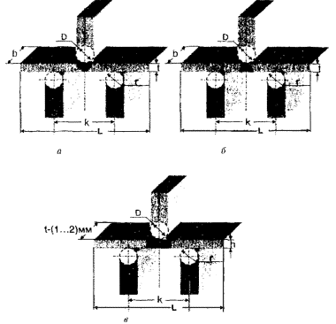 Приложение 9ВИЗУАЛЬНЫЙ И ИЗМЕРИТЕЛЬНЫЙ КОНТРОЛЬ КОНТРОЛЬНЫХ СВАРНЫХ СОЕДИНЕНИЙ ИЗ ПОЛИМЕРНЫХ МАТЕРИАЛОВ, ВЫПОЛНЕННЫХ СВАРКОЙ С ЗАКЛАДНЫМИ НАГРЕВАТЕЛЬНЫМИ ЭЛЕМЕНТАМИ1. Визуальный и измерительный контроль контрольных сварных соединений производит член аттестационной комиссии глазом с использованием лупы увеличением 5 - 7 крат. Выбор мест измерения выполняет представитель аттестационной комиссии. 2. Внешний вид контрольных сварных соединений, выполненных при помощи деталей с закладными нагревательными элементами, должен отвечать следующим требованиям: трубы за пределами соединительной детали должны иметь следы механической обработки (зачистки); индикаторы сварки деталей должны находиться в выдвинутом положении; угол излома сваренных труб или трубы и соединительной детали не должен превышать 5°; поверхность деталей не должна иметь следов температурной деформации или сгоревшего полимерного материала; по периметру детали не должно быть следов расплава полимерного материала, возникшего в процессе сварки. Приложение 10ИСПЫТАНИЯ КОНТРОЛЬНЫХ СВАРНЫХ СОЕДИНЕНИЙ НА СТАТИЧЕСКИЙ ИЗГИБ1. Механические испытания контрольных сварных соединений металлических материалов проводят в соответствии с ГОСТ 6996, полимерных материалов - в соответствии с ГОСТ 11262. 2. Испытаниям на статический изгиб стыковых соединений листов и труб толщиной 3 мм и выше подлежат 4 образца, из которых 2 образца подлежат изгибу со стороны усиления шва (рис. 10.1, а), а другие 2 образца - со стороны корня шва (рис. 10.1, б). При толщине листов и стенок труб 12 мм и выше допускается выполнять испытание образцов «на ребро» (боковой изгиб) согласно рис. 10.1, в. При этом испытаниям подлежат не менее 4 образцов. 3. Для стыковых соединений металлических труб диаметром до 108 мм включительно при толщине стенки до 6 мм включительно допускается проводить испытания на сплющивание, если это не противоречит требованиям нормативных документов. 4. Вырезку заготовок для изготовления образцов для механических испытаний производят механическим путем режущим или абразивным инструментом. Допускается вырезку заготовок выполнять плазменной или газовой резкой при условии последующей механической обработки заготовок в зоне резки на глубину не менее 2 мм. Краевые участки стыкового и таврового контрольных сварных соединений пластин, выполненных ручными способами сварки, длиной не менее 25 мм подлежат удалению. При автоматической и механизированной сварке в среде защитных газов и порошковой проволокой при толщине металла более 10 мм, автоматической сварке под флюсом, электрошлаковой сварке длину краевых участков принимать в соответствии с указаниями ГОСТ 6996. 5. При изготовлении образцов усиление шва с наружной и внутренней стороны следует удалять механическим путем. Перед изготовлением образцов остающаяся стальная подкладка в контрольных сварных соединениях, выполненных с подкладкой, должна быть удалена. Рис. 10.1. Схемы испытаний на статический изгиб со стороны усиления шва (а), со стороны корня шва (б) и на боковой изгиб - изгиб «на ребро» (в) образцов из контрольных стыковых сварных соединений листов и труб Рекомендуемые параметры: D - диаметр пуансона, L - длина образца; b = l,5t, но не менее 10 мм; D = 2t или D = 2h; r = t, но не более 25 мм; K = 2,5D; L = D + 2,5h + 80 мм. Приложение 11ИСПЫТАНИЯ КОНТРОЛЬНЫХ СВАРНЫХ СОЕДИН