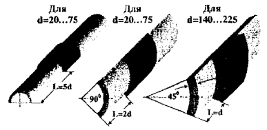 где y - длина шва, не подверженная отрыву; e - длина зоны сварки (длина шва) в пределах одной трубы, определяемая по расстоянию между крайними витками спирали закладного нагревательного элемента. 5. Результаты испытаний считают положительными, если на всех испытанных образцах отрыв не наблюдался или если Сс составляет не менее 40 %. 6. Сварные соединения труб и седловых отводов с закладными нагревателями подвергают испытаниям на отрыв. Испытательная машина должна быть снабжена оснасткой, обеспечивающей приложение нагрузки по одной из двух схем испытания, приведенных на рис. 13.3. Длина полиэтиленовой трубы контрольного сварного соединения принимается равной длине седелки. Внутрь полиэтиленового патрубка испытываемого образца для передачи усилия вводят металлический сердечник, наружный диаметр которого D определяется по табл. 13.2 в зависимости от наружного диаметра трубы d и стандартного размерного отношения SDR. Сварной узел подвергают испытанию целиком и нагружают до полного отделения седлового отвода от трубы. 7. Качество оценивают по виду излома в месте сварки седлового отвода с трубой. Излом должен иметь вязкий характер разрушения по замкнутому периметру сварного шва. Хрупкое разрушение сварного шва не допускается. Таблица 13.2 Диаметр сердечника при испытании седловых отводов на отрыв