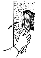 2.4. К окраске допускается подготавливать поверхности строительных конструкций и места их сопряжений (углы, примыкания, стыки), не имеющие отклонений от проектного положения, приведенных в табл. 1, а также сквозных и усадочных трещин, раскрытых на ширину более 3 мм. 2.5. Поверхности, подлежащие подготовке к окраске не должны иметь загрязнений, пятен и высолов. Поверхности изделий индустриального изготовления должны удовлетворять требованиям стандартов на эти изделия. Оштукатуренные конструкции не должны иметь отслоений штукатурки от поверхности конструкций, следов затирочного инструмента, потеков раствора. Поверхности, облицованные листами сухой гипсовой штукатурки не должны иметь: нарушений крепления листов; отслоений картона от гипса с торца листа на величину более 20 мм; надрывов картона с обнажением гипса на длину более 30 мм; более двух отбитых углов в стыке листов по всей поверхности и более одного отбитого угла в одном стыке. Поверхности, облицованные асбестоцементными листами, подлежащие подготовке к окраске, не должны иметь околов, сдиров, наплывов, искривлений. 2.6. При подготовке поверхностей к окраске должны выполняться следующие технологические операции: очистка поверхности; сглаживание поверхности; расшивка трещин; огрунтовка; частичная подмазка; шлифовка подмазанных мест; сплошная шпаклевка; шлифовка; вторая сплошная шпаклевка; шлифовка. 2.7. Очищают поверхности и трещины на ней от пыли, грязи, брызг и потеков раствора с помощью металлических скребков, лещадью, искусственной пемзой, закрепленной в обойму или шарнирной теркой (рис. 1, 2). Жировые пятна промывают 2 %-ным раствором соляной кислоты с помощью кисти; высолы на поверхности сметают щетками, промывают очищенные места и просушивают поверхность до влажности не более 8 %. Трещины расшивают штукатурным ножом или металлическим шпателем на глубину до 2 мм. Огрунтовка поверхностей Мыловарную грунтовку на строительном объекте готовят из концентрированной основы (студня) выпускаемого комбинатом «Стройдеталь» треста Мосотделпром в виде брикетов весом 1 кг. Студень используется в течение 10 дней в летних и 20 дней в зимних условиях. Для приготовления грунтовки весовую часть студня заливают двумя частями горячей воды (t = 80 °С). Затем состав перемешивают до полного растворения студня, добавляют 3 части холодной воды и снова тщательно перемешивают. Перед употреблением грунтовку процеживают через сито с 625 отв./см2. Грунтовка должна быть однородной, без следов расслоения, нерастворившихся кусочков мыла, а также без песчинок и другого сора. Наносят грунтовочный состав механизированным способом с помощью электрокраскопульта или краскопульта. Для получения равномерного слоя грунтовки удочку передвигают вдоль поверхности на расстоянии 0,75 м от шва, делая одновременно плавные круговые движения по спирали. Вторую и третью огрунтовку выполняют окрасочным составом, разведенным водой до вязкости 40 - 43 сек. по ВЗ-4, наносят при помощи валика. 2.9. Перед окраской масляными составами выполняют проолифку поверхностей следующим составом: олифа, кг - 1 пигмент для подцвета, кг - 0,05 - 0,1 растворитель (скипидар, бензин и др.), кг - 0,05 - 0,1 В олифу при тщательном перемешивании вводят пигмент и смесь пропускают через сито с сеткой 918 отв./см2. Перед использованием в состав добавляют растворитель 