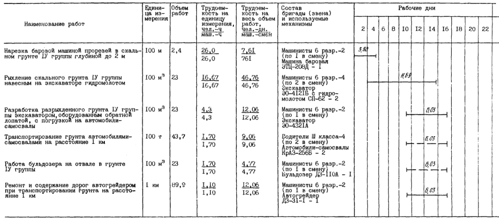 грунтов, график производства работ и калькуляцию затрат труда, средства механизации с учетом наличия парка землеройных механизмов.