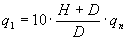 В формулах (7) - (9): H- высота расположения устья источника над уровнем земли, м; для группы источников высота H определяется как высота условного источника, равная среднему арифметическому из высот всех источников группы; D - диаметр устья источника, м; для группы источников диаметр условного источника равен: