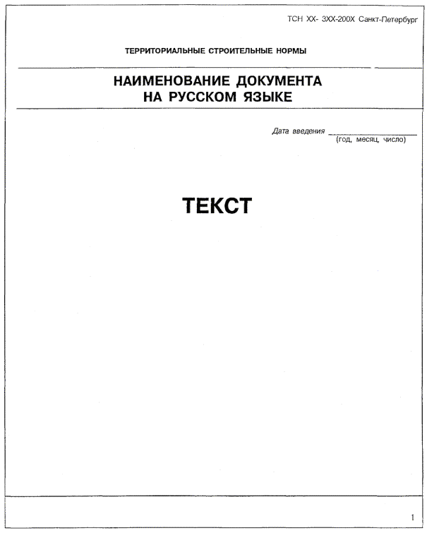 Приложение Б(обязательное) Форма первой страницы территориальных строительных норм Санкт-Петербурга